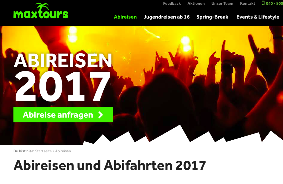- Die Buchung eurer Abireise geht ganz easy auf www.max-tours.de. Es stehen euch das Anfrage- und das Buchungsformular zur Verfügung
